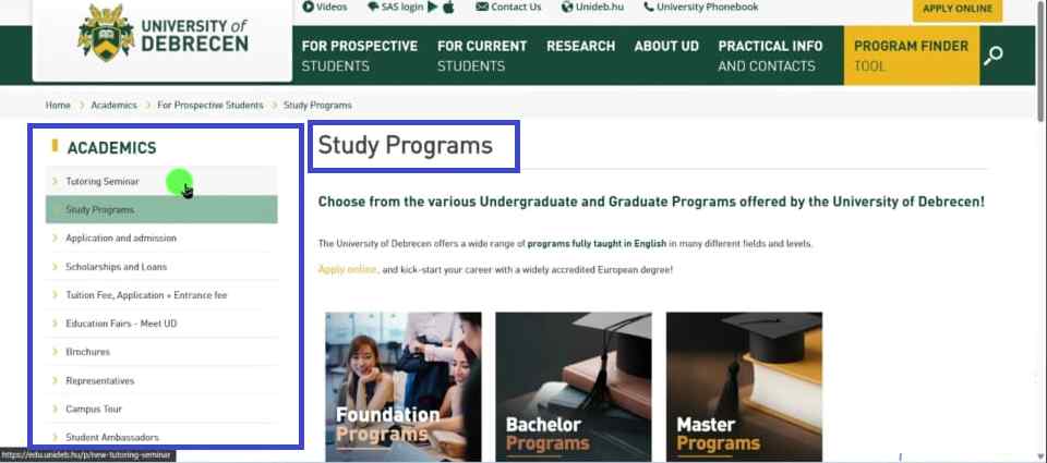 Choose your preferred BSc, MSc, or PhD program from the University of Debrecen.